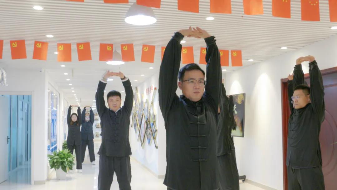 在公司領(lǐng)導(dǎo)的引領(lǐng)帶動(dòng)下,全體員工都加入到了“八段錦”訓(xùn)練的行列中來(lái)。每日晨會(huì),員工們都紛紛加入其中,有時(shí)王海軍總經(jīng)理還親自示范指導(dǎo),領(lǐng)著大家練、帶著大家做,耐心細(xì)致地講解動(dòng)作要領(lǐng)和注意事項(xiàng),并在訓(xùn)練結(jié)束后進(jìn)行現(xiàn)場(chǎng)點(diǎn)評(píng),為大家改進(jìn)動(dòng)作提出具有針對(duì)性和指導(dǎo)性的意見建議,讓大家在領(lǐng)略傳統(tǒng)太極文化魅力的同時(shí),于文化熏陶中達(dá)到陶冶情操和強(qiáng)健體魄目的。